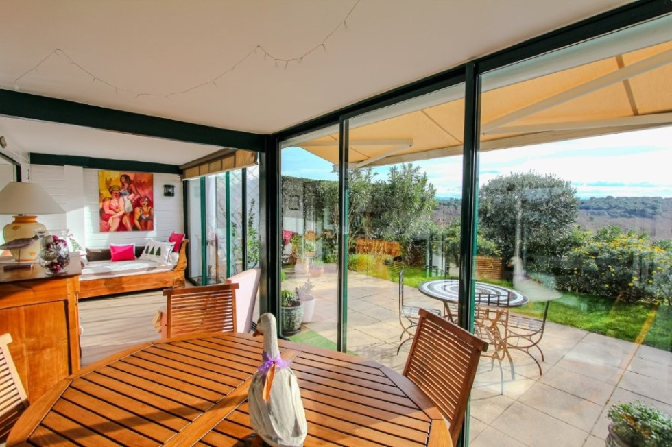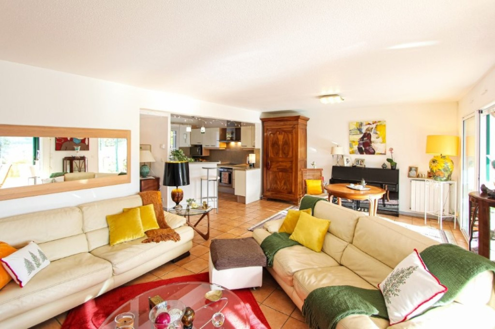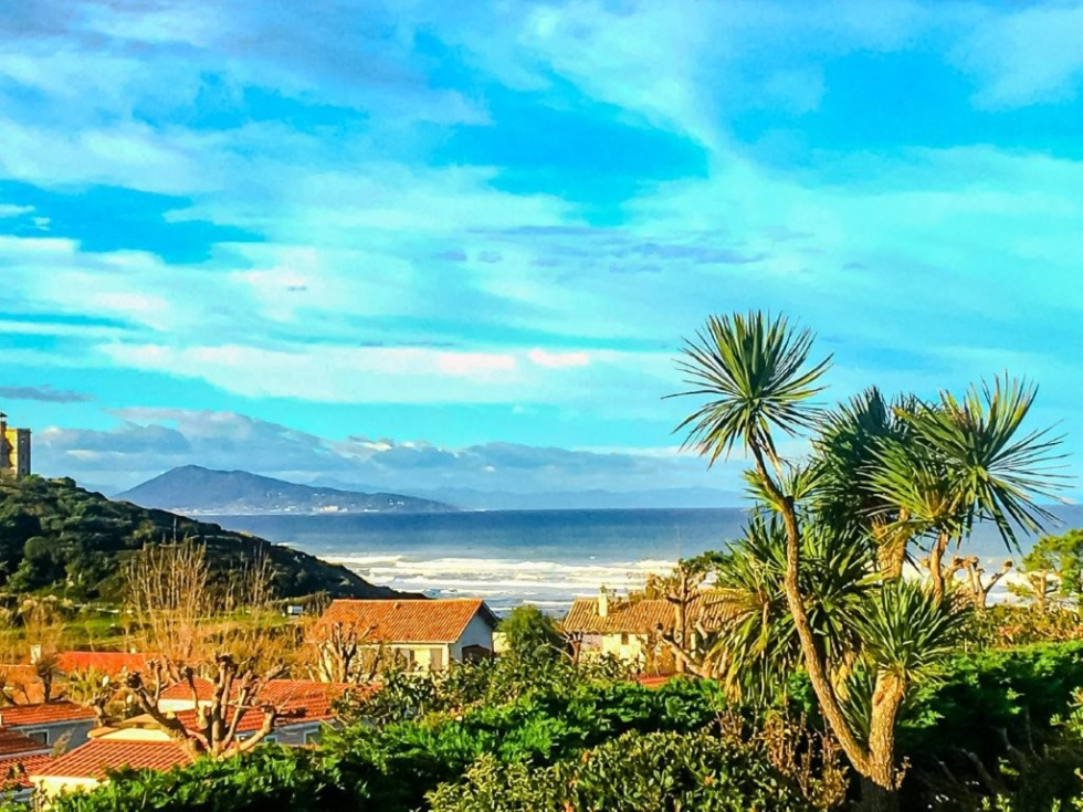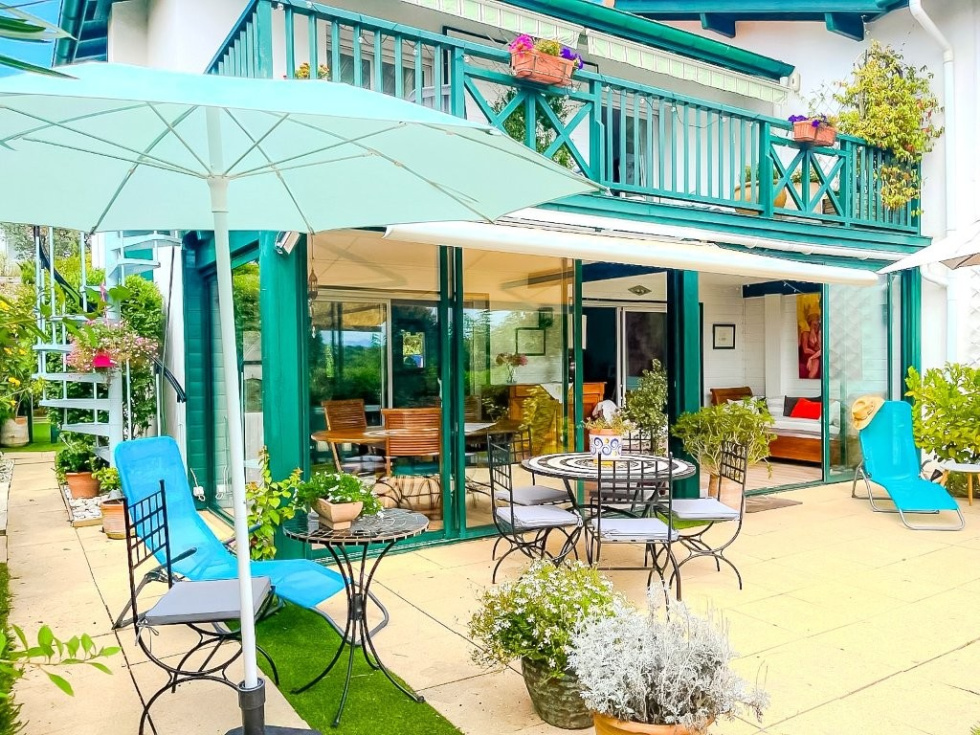 À quelques pas de la plage de la Milady et du Golf de d’Ilbarritz. Très bel appartement de 130 m² comprenant un grand espace de vie avec salon / salle à manger / cuisine et véranda. Buanderie, wc. Studio indépendant aménagé avec pièce à vivre sur terrasse, salle d’eau et wc. À l’étage : 3 chambres (placards), salle de bains avec wc, salle d’eau. Terrasse avec une vue sublime sur les montagnes et la mer. 2 Parking privatifs. Abri de jardin.