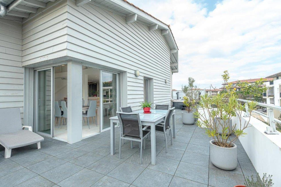 CO-EXCLUSIVITE ANGLET LA ROCHEFOUCAULT DERNIER ETAGE TERRASSE - GARAGE - CAVE Dans une résidence intimiste construite en 2019, très bel appartement en deuxième étage, triple exposition avec des prestations très qualitatives, commerces à pied. D’une superficie de 145m², il se compose d’une grande entrée, nombreux placards et espaces de rangement, une très belle pièce de vie avec salon cathédrale, une cuisine ouverte aménagée et équipée, 3 chambres dont 2 avec balcons, une mezzanine aménagée en bureau et espace détente. Vous bénéficierez d’une très agréable terrasse de plus de 50m² avec jacuzzi. Double box fermé en sous-sol et cave Bien rare et très qualitatif pour un mode de vie tout à pied.