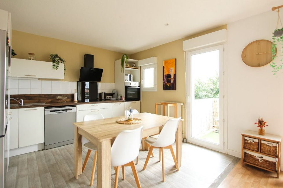 Bel appartement T3 au 1 er étage, en très bon état avec terrasse et vue dégagée. D’une superficie de 66 m², il se compose d’une entrée, une très belle pièce de vie lumineuse avec accès sur la terrasse plein Sud, cuisine ouverte, 2 chambres, une salle de bain, wc indépendant, cellier. Proche à pied des écoles, collège, du complexe sportif et des commerces.