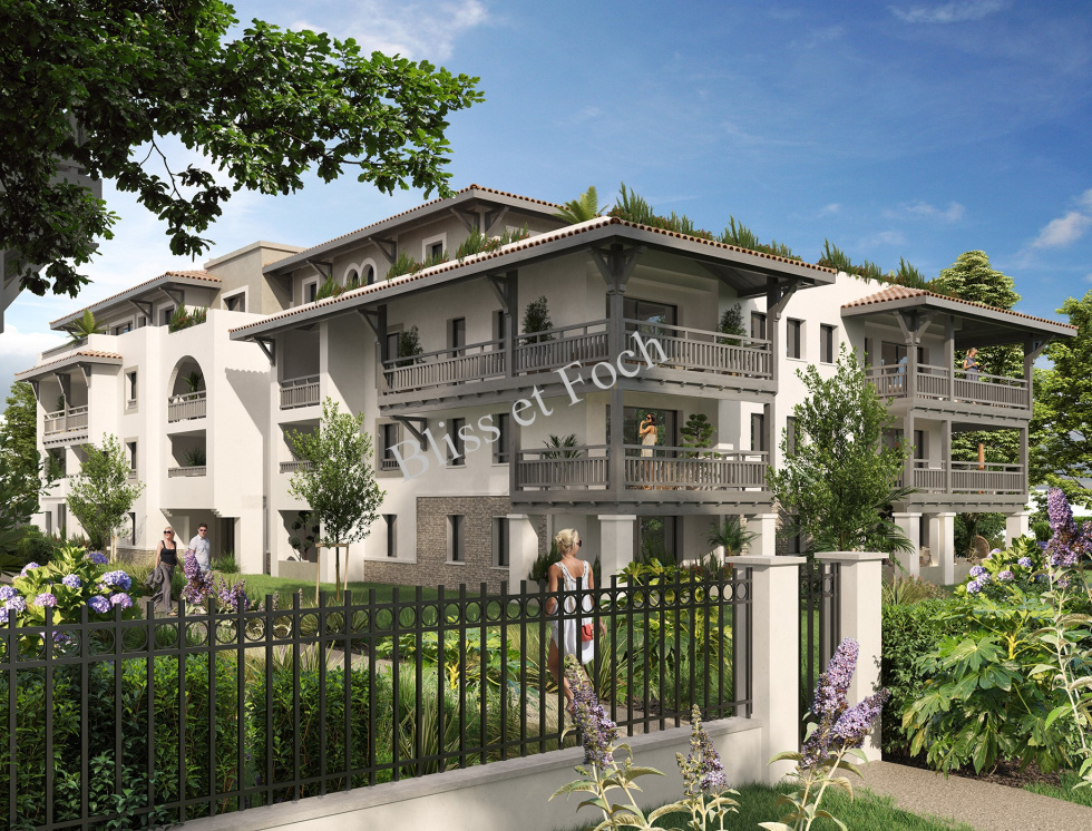 VENTE EN ETAT FUTUR D’ACHEVEMENT : Dans une résidence neuve de très haut standing au centre-ville d’Anglet. Superbe appartement 3 pièces de 74.15 m² au rez-de-chaussée exposé Sud et Ouest avec une terrasse et un jardin privatif de 161.29 m². Très calme. Rare ! Possibilité d’acquérir un parking. Frais de notaire réduits. (Environ 2%)Idéalement située entre la mairie d'Anglet et le Stade Aguilera de Biarritz, la résidence bénéficie d'un paysage verdoyant à l'ambiance apaisée. Vous trouverez dans ce quartier, commerces et services, activités culturelles et sportives, écoles et crèche, parfaitement desservit par un réseau de transport en commun très fourni. Son implantation a permis d'offrir des expositions idéales à l'ensemble des logements. En retrait des axes de circulation, la résidence jouit d'un calme étonnant dans un quartier pourtant situé au cœur de l'agglomération urbaine et de ses commodités. Son architecture Néo-Basque soignée et élégante intègre des innovations technologiques répondant aux normes les plus exigeantes en matière d'énergie et d'environnement (RE 2020 énergie).La résidence propose un très large choix d'appartements fonctionnels du T2 au T5 dont certains en attique. Des prestations de grandes qualités viennent compléter les attraits de cette résidence ancrée au sein d'un parc paysagé. Lauréat du concours de L'Innovation du Mondial du Bâtiment en 2019, Le système HITACHI-TRIPLE C R32 Sensible à la problématique écologique, utilise le fluide frigorigène R32 plus respectueux de l'environnement et qui grâce à des performances EER et COP certifiées et à son efficacité énergétique (jusqu'à A++) permet de diviser au minimum par trois la consommation d'électricité. Ces équipements bénéficient par ailleurs de tous les avantages liés au pilotage et surveillance à distance proposés dans la version domotique installée avec le système.100% des places en sous-sol permettront l'installation de l'équipement de borne électrique de recharges de véhicules. Une élégante résidence de standing éco-responsable dans un havre de paix en plein cœur du centre ville d'anglet.