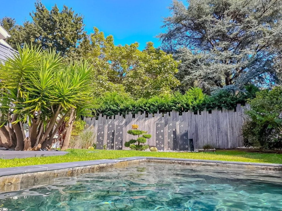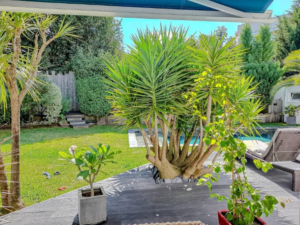 Située à Anglet, dans un environnement résidentiel particulièrement paisible, à l’abri des regards et à proximité immédiate des commodités, cette élégante villa de 163 m² déploie tout son charme sur une parcelle paysagée de 778 m². Dès l’entrée, vous serez séduit par une superbe pièce de vie de 61 m², baignée de lumière grâce à son exposition plein sud. Cet espace généreux réunit un salon convivial, une salle à manger chaleureuse et une cuisine ouverte contemporaine, le tout prolongé par de larges ouvertures sur la terrasse, la piscine et le jardin paysagé — une véritable invitation à la détente. Le rez-de-chaussée propose également deux belles chambres, une salle d’eau moderne ainsi qu’un WC indépendant. À l’étage, la suite parentale de 41 m² constitue un véritable cocon : salle d’eau avec WC, dressing et agréable espace bureau en mezzanine viennent parfaire ce niveau intimiste et fonctionnel. Un appartement T2 indépendant offre de multiples possibilités (accueil famille, location saisonnière, profession libérale), tandis qu’un garage complète les prestations de ce bien. À l’extérieur, le jardin soigneusement aménagé, la piscine et son pool house parfaitement équipé créent une atmosphère résolument tournée vers l’art de vivre, dans un esprit vacances tout au long de l’année. Une propriété rare, alliant confort, luminosité et sérénité.